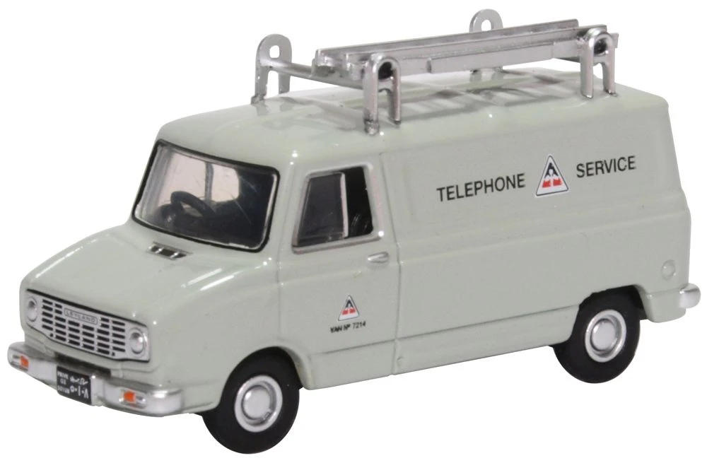 The Oxford Diecast 1:76 scale diecast model Sherpa Van which dates from the 1970s makes an appearance in mid grey with an unusual red black and white triangular logo of an even more unusual Telephone Service!