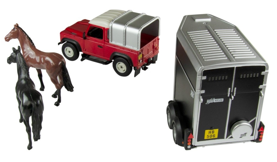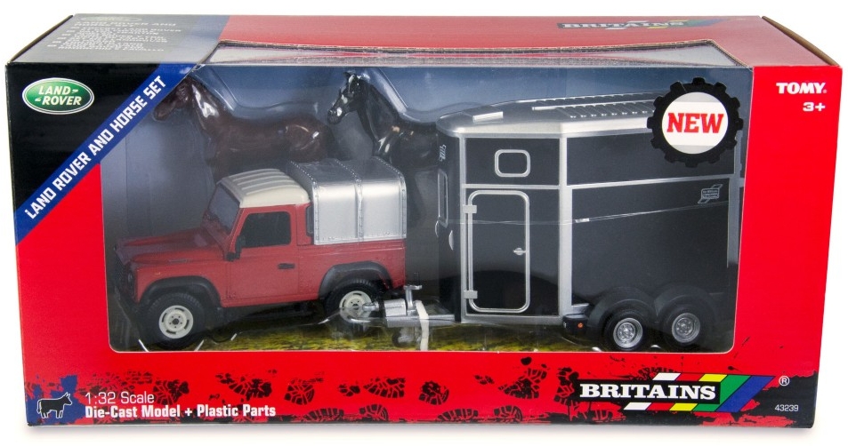 The Britains Land Rover Horse set really brings any countryside scene to life in moments! The Land Rover Defender 90 has a detachable canopy, spare wheel, chunky treaded tyres and superb interior detail. The tow hitch is compatible with other 1:32 scale authentic replica plastic farm vehicles and machinery.