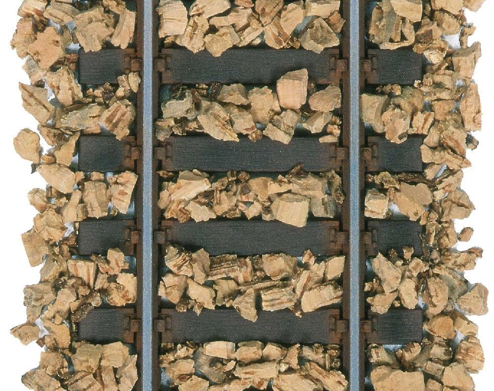 The sound-absorbing cork/rubber compound from Busch can be used as a base for sections of track and switches on a model railway. It can also be used to replicate gravel surfaces on car parks, paths etc either as part of a railway layout or model village.