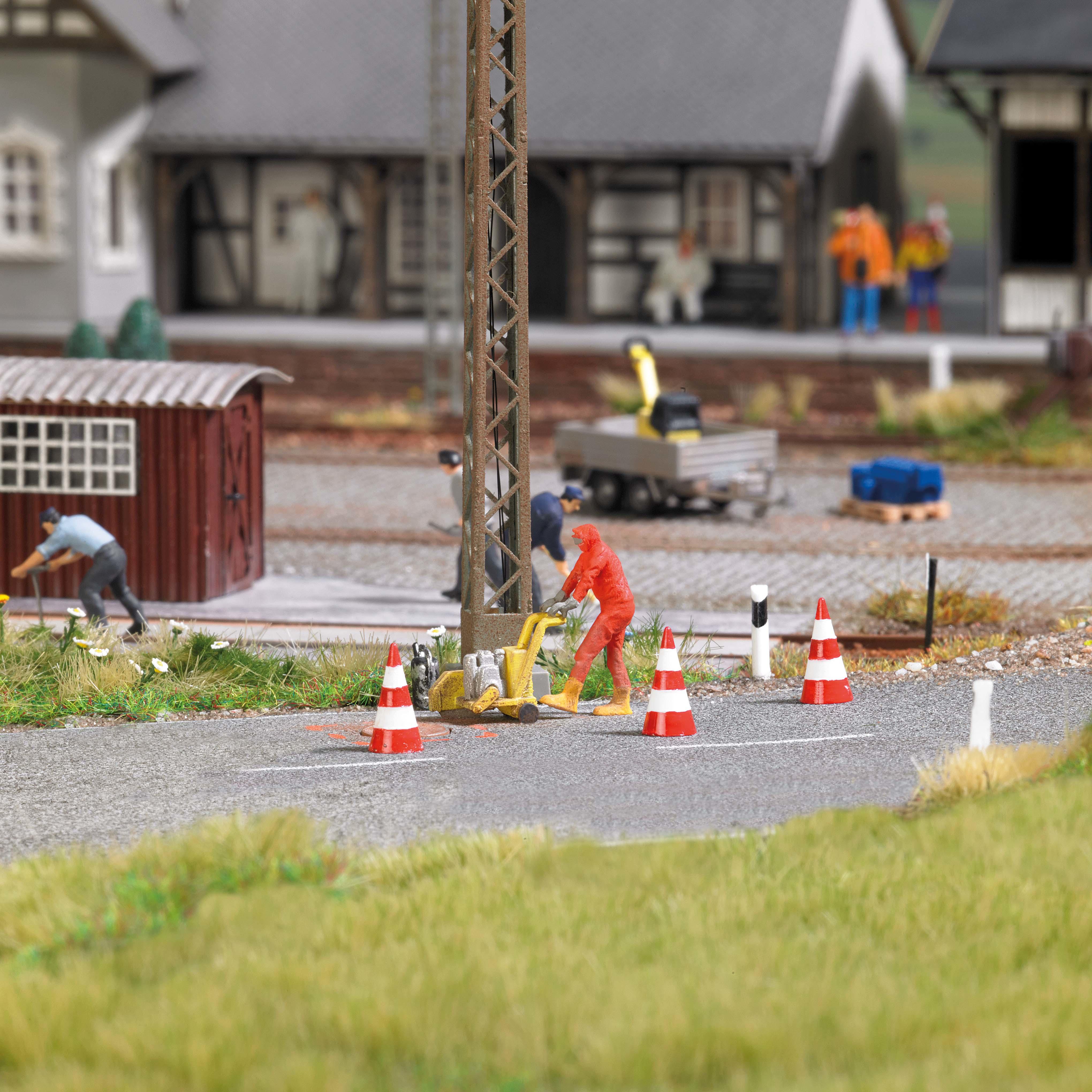Bring your diorama to life with this asphalt saw with accessories.