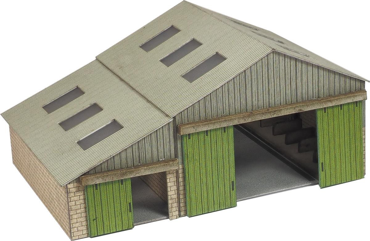 Typical of the more modern type of farm buildings that have been added on to farms since the early 1960’s, this kit includes a large barn/cow shed, silo pit, and 2 hen huts.