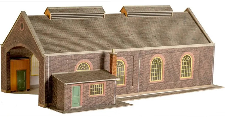 This 1:76 scale detailed card kit is based on a typical design of a Victorian Loco Shed. Position the locomotive shed at the end of a twin set of tracks.