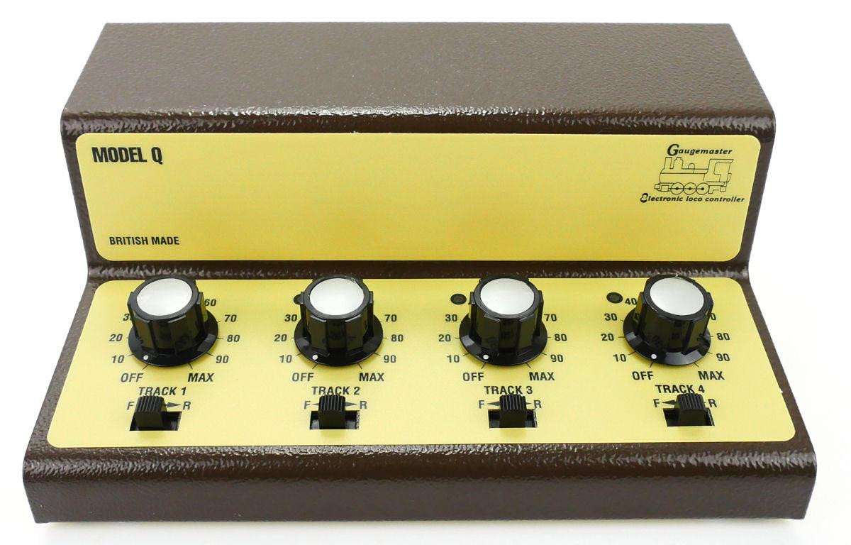 The Model Q is the best selling four track mains powered controller available today. It represents good value for money as it offers all the features associated with Gaugemaster control such as smooth running, impressive slow-speed characteristics, a 16v AC output for accessories, 2 x 12v DC outputs, again for accessories but most impressively four track control from the one unit.