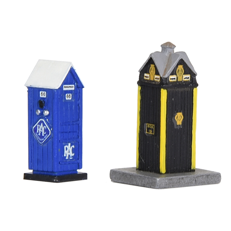 Pack of 2 ready assembled N gauge AA and RAC telephone boxes (One of each)