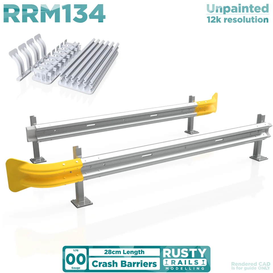 Rusty Rails Modelling 134 Crash Barriers, 1:76/OO, Self Assembly Unpainted 3D Printed Kit
