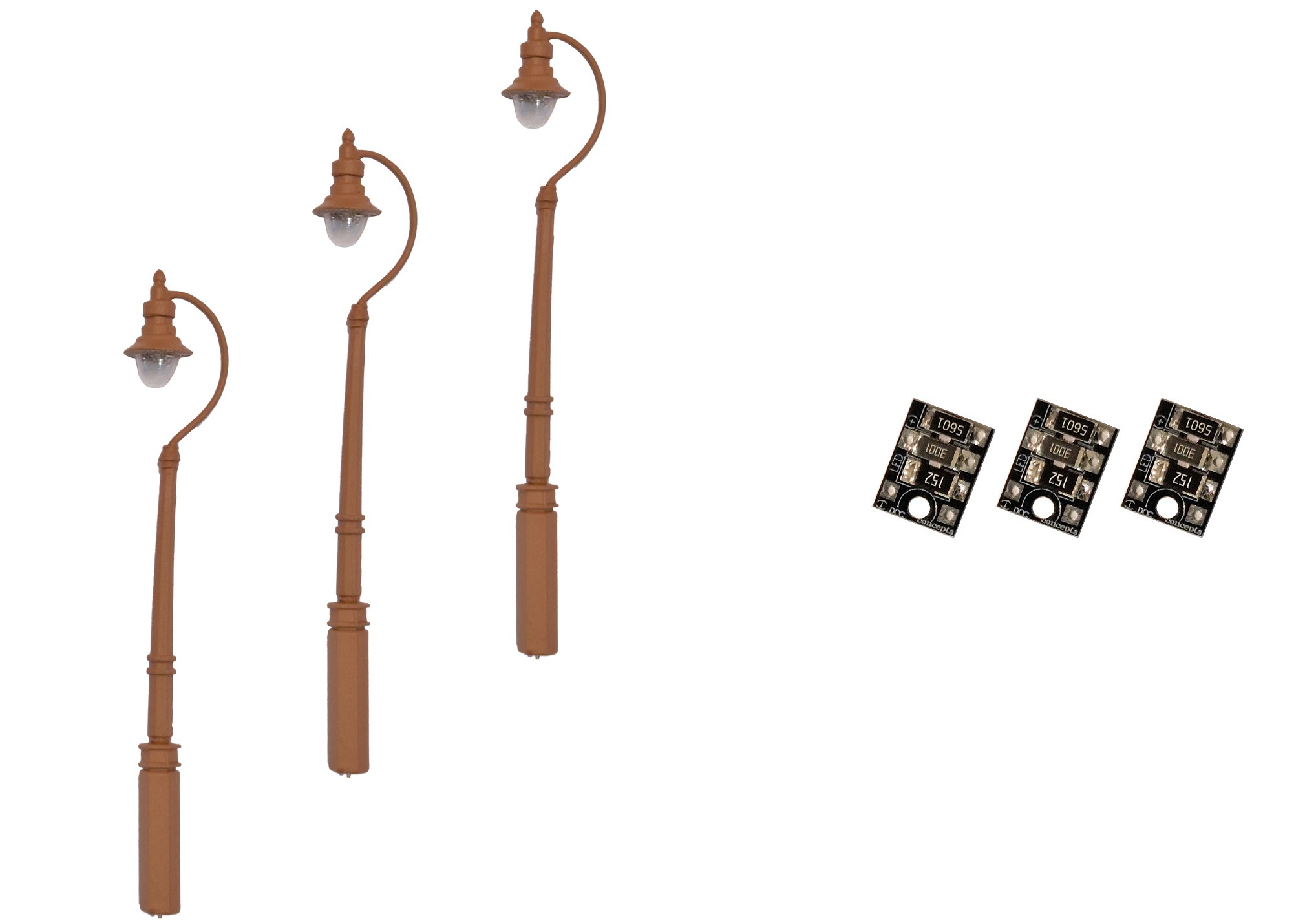 Super-high quality LED 4mm scale swan-neck street/platform lamps in Brown (3 pack)