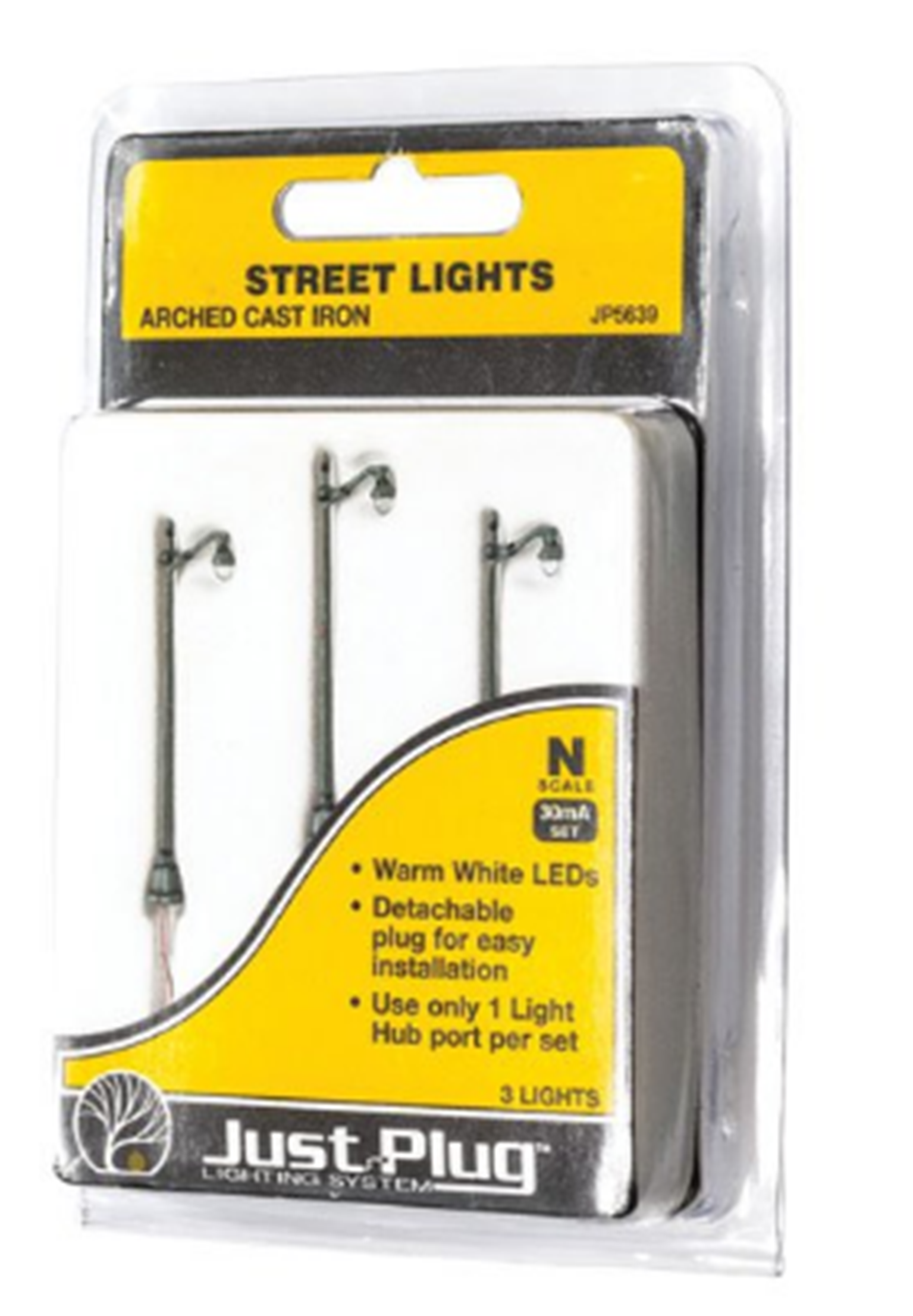 These lights can be used to light city streets, sidewalks, downtown areas, parks, bridges and more. The set consumes 20mA and is RoHS compliant. There are 3 warm white LED street lights in this package.