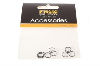 Pack of ten traction tyres for Graham Farish N gauge Ivatt Class 2MT locomotives.
