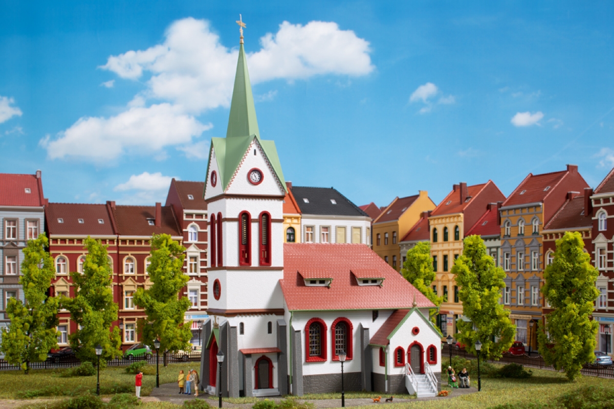 With elegant doorways and windows, the kit is modelled on the church in Bad Elster in Vogtland.