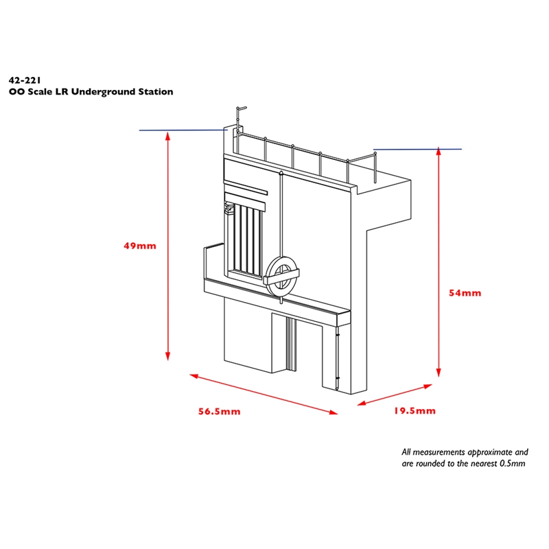 This low relief N scale underground station entrance is styled on designs by Charles Holden which can be found along the Northern Line. It features embossed Portland Stone exteriors, a continual moulded lintel which runs around the building’s façade, a London Underground roundel hung above the entrance way to the ticket hall and an etched glazed window which lets in much needed light. It is topped with another Underground roundel making this the perfect addition to any N scale layout inspired by the Capital!