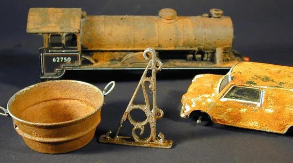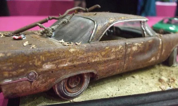 A three part system (binder, powder and developer) that puts a realistic scale like rust finish onto all types of paintable surfaces, wood, plastic, metal, within hours thereby creating greater realism for all types of modelling.