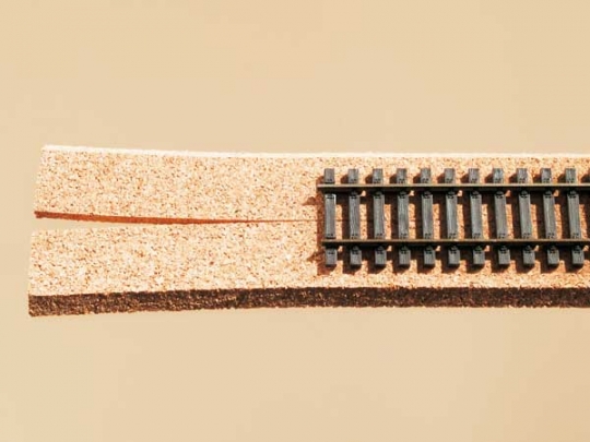 The natural material dampens wheel noise and can be ballasted. The double strip construction allows the cork to be shaped easily to any track radius. This pack contains 4 double strips each 500mm (length) by 13mm (width) by 3mm (height) for a total length of 2000mm track.