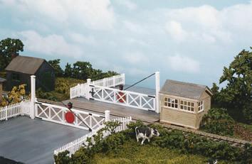 These distinctive gates were one of the many different types used whenever road and rail’s paths crossed. On the prototype the gates spent most of the time set across the tracks, but whenever the train was due, the gates were moved across the road in sufficient time to allow trains to pass through without delay. On a layout they can be left set against the road – not a problem because on a model railway there’s usually a train due very soon anyway. The task was the responsibility of a crossing keeper or signalman. If there was no signal box nearby, often a cabin was provided next to the crossing, sometimes with a cottage.