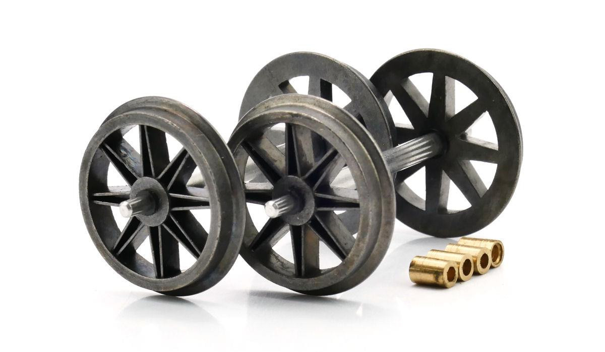 Each pack contains a pair of axles along with the necessary brass bushes to allow the fitting of these extremely free rolling wheel sets.