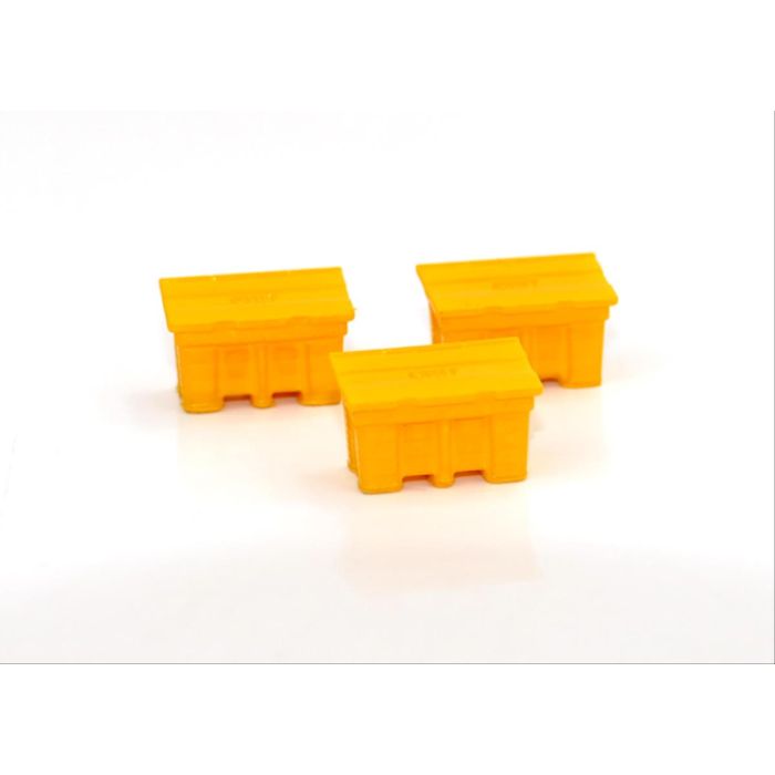 This pack contains three modern yellow grit boxes made from photopolymer resin. They are pre-painted and can be planted onto your models straight from the pack.