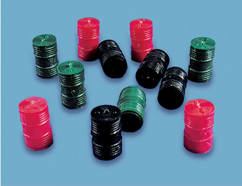 Pack contains 12 Oil Drums to use as a load or as detail for your goods yard or oil depot. See Ratio Ref. 529 Oil Depot