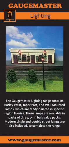 Download this free A4 sized leaflet listing the entire Gaugemaster lighting range of OO scale lamps.